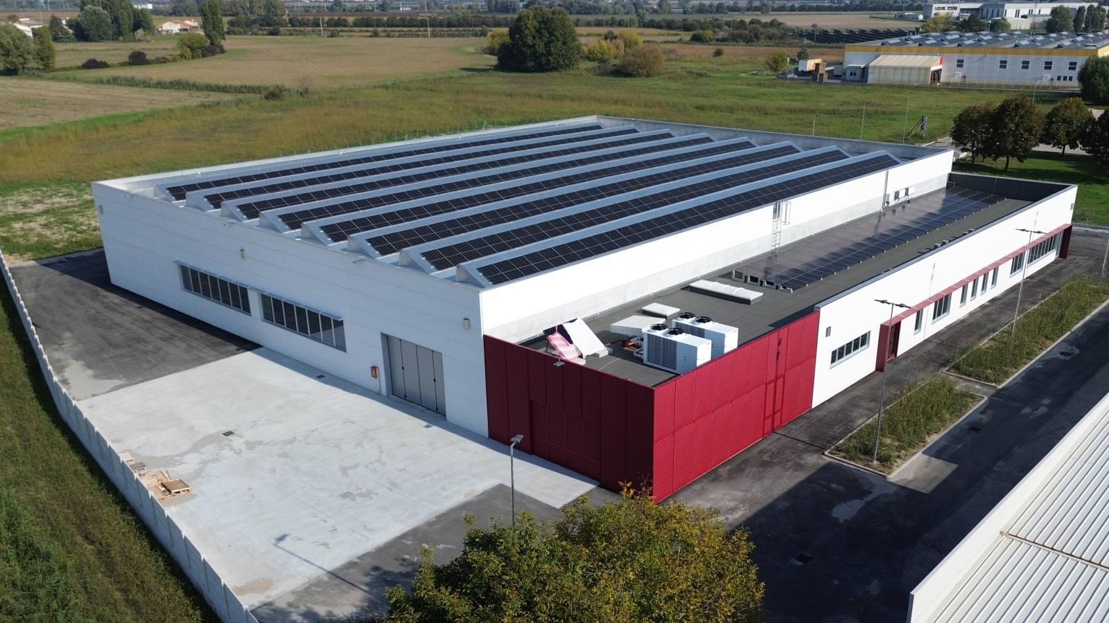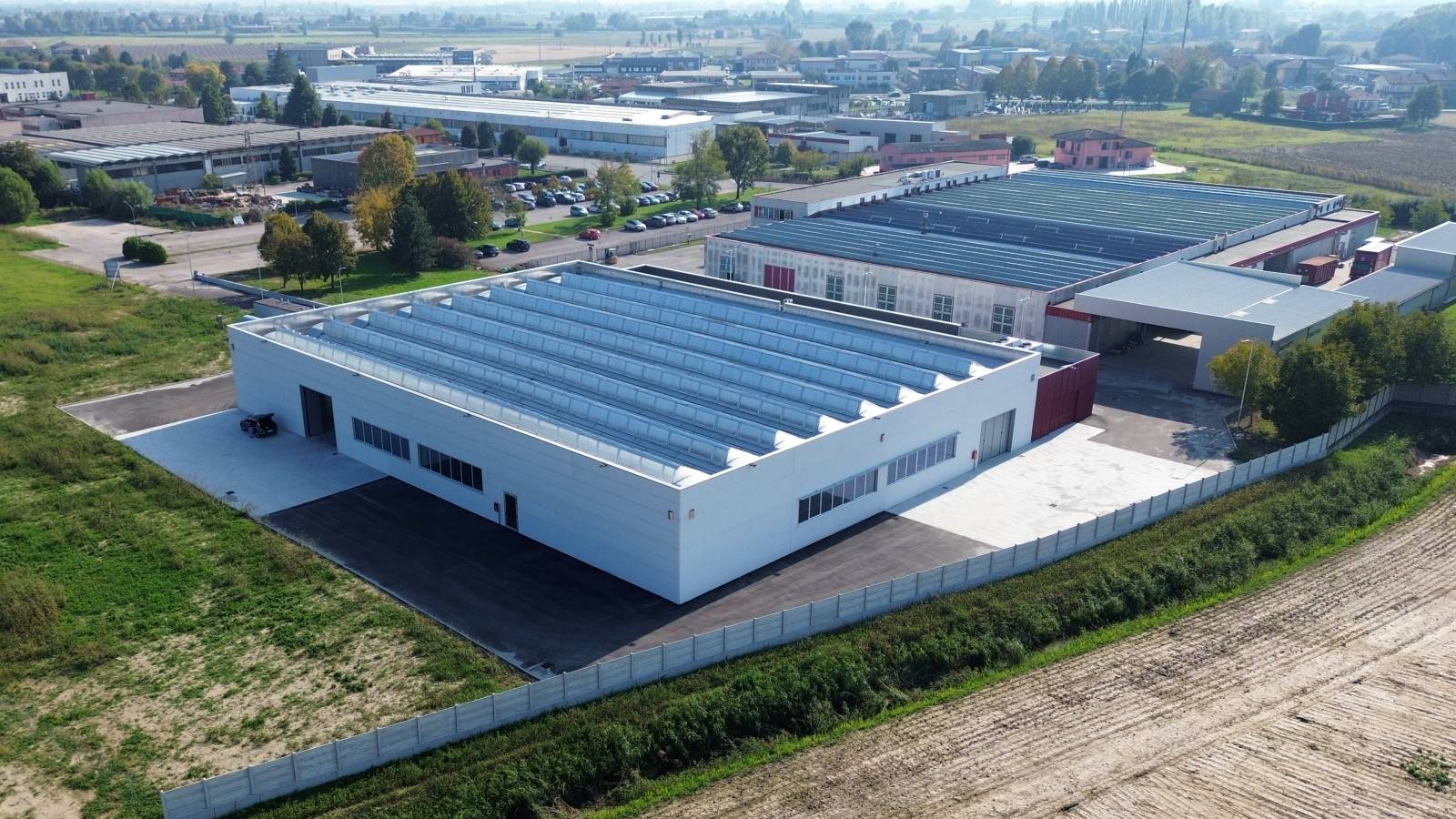 - Zona produttiva con copertura a shed in alluminio naturale, ideale per l’installazione di impianti fotovoltaici e per un’illuminazione naturale diffusa.